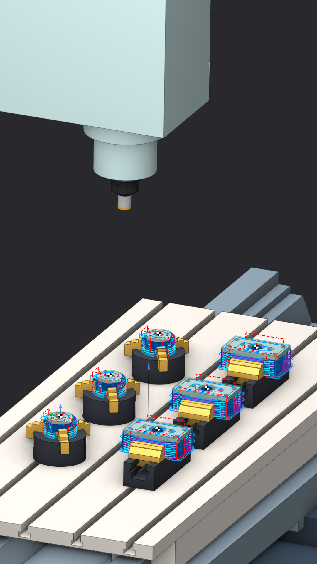 The platform manages multi-part workflows seamlessly, automatically reordering tasks to save machine time. It also includes G-code verification, a vast postprocessor library, and full digital twin simulation for accurate machining validation.