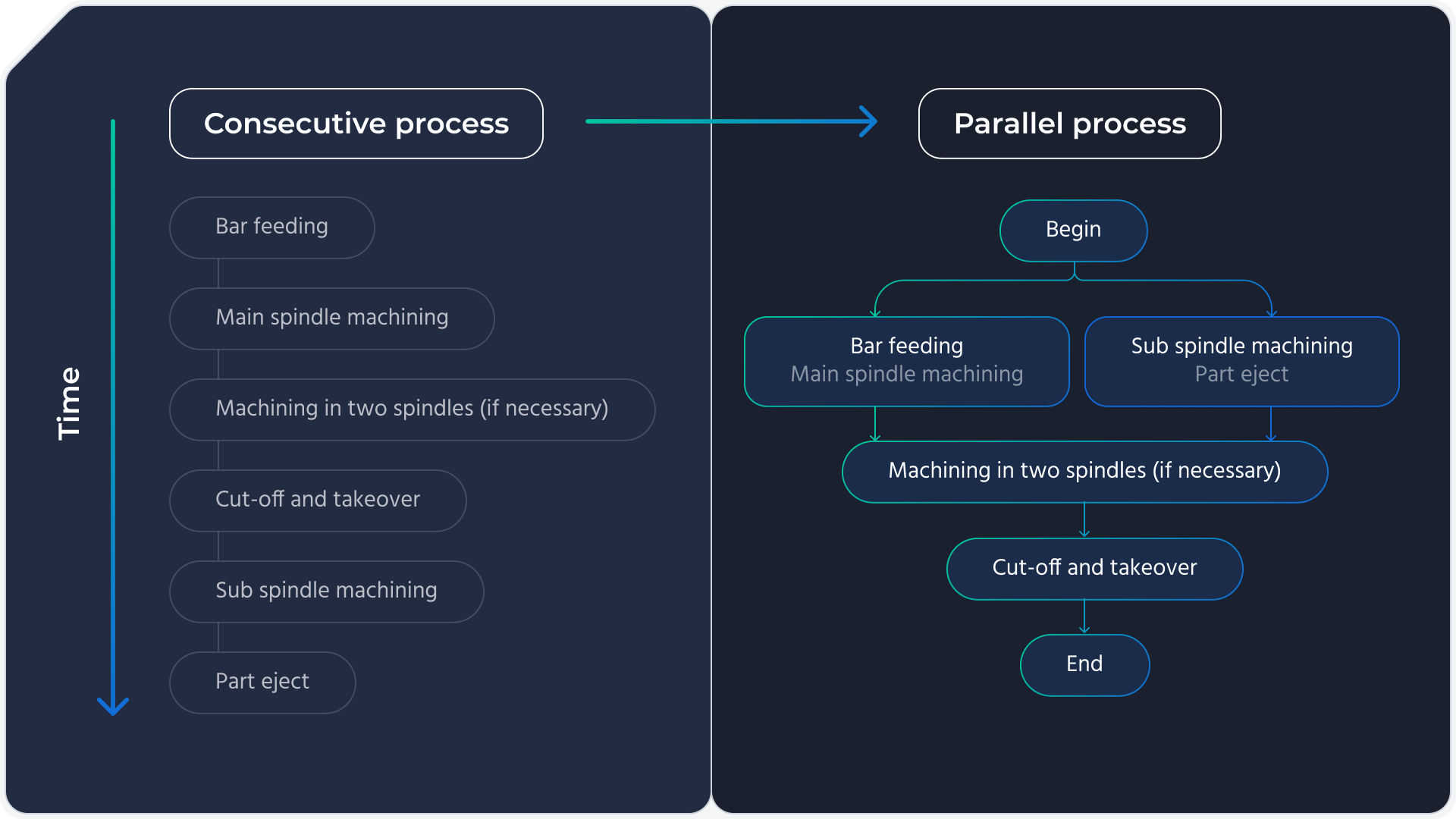 Automatic Channels Synchronization is a cutting-edge feature that enhances the efficiency of Swiss-type CNC machines. This functionality ensures seamless coordination between multiple machining channels, enabling simultaneous operations without conflicts.