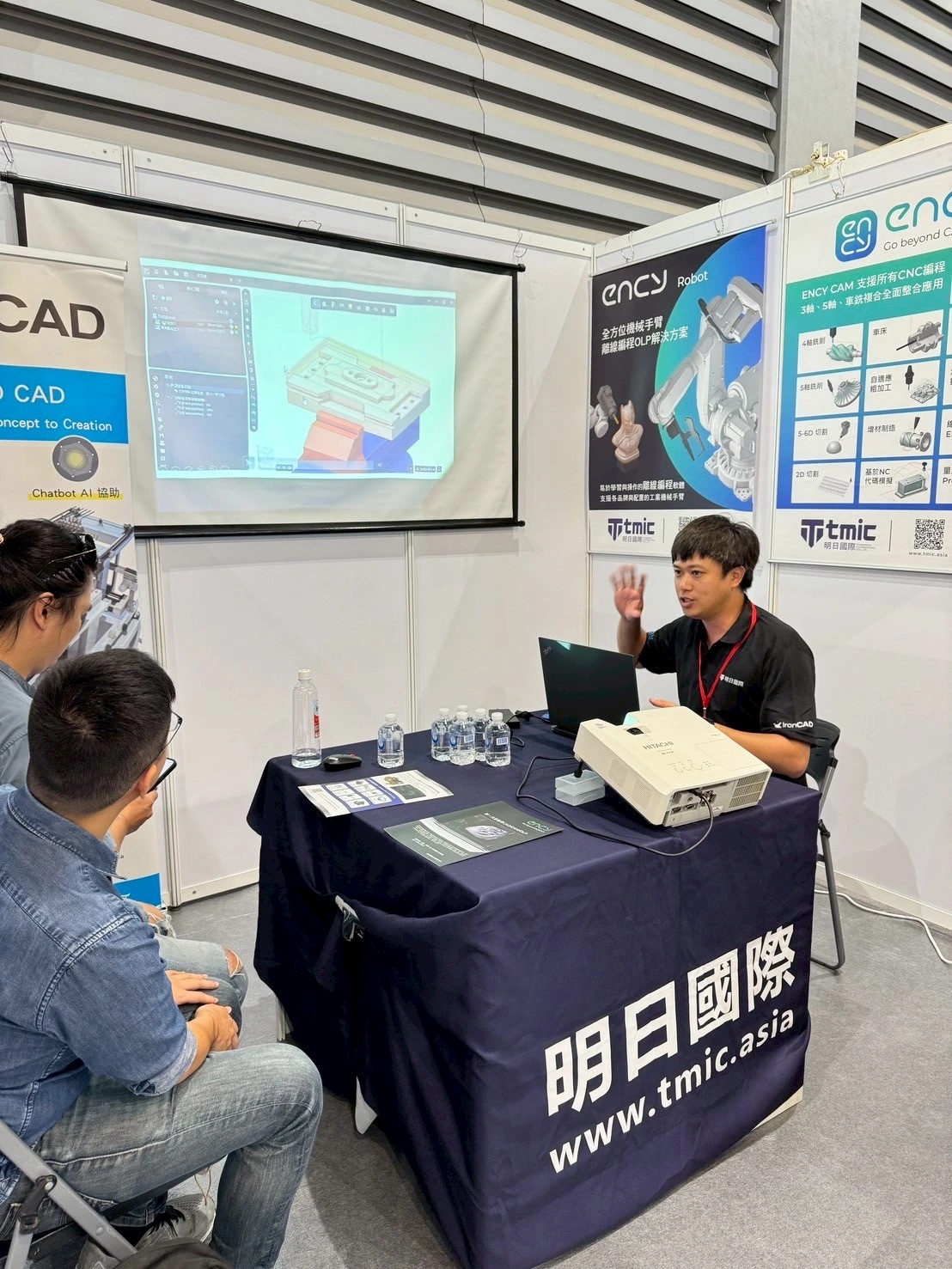 At the 2025 Taipei International Industrial Automation Exhibition, TMIC showcased ENCY CAD/CAM system and ENCY Robot in a live, end-to-end manufacturing workflow: 3D design → CNC machining → robot offline programming → digital-twin validation on machine tools and robot cells.